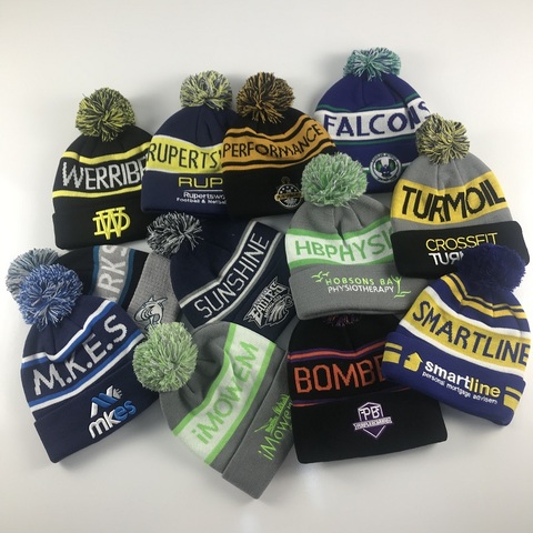 Jacquard lavorato a maglia e Logo ricamato sul polsino cappelli a cuffia uomo e donna con cappello invernale pompon mantenere il calore cappello Beanie fornitore